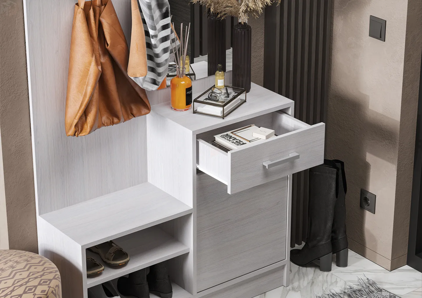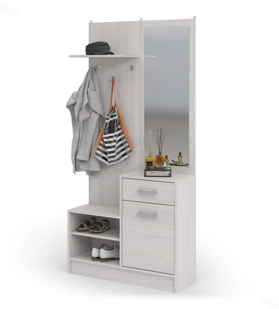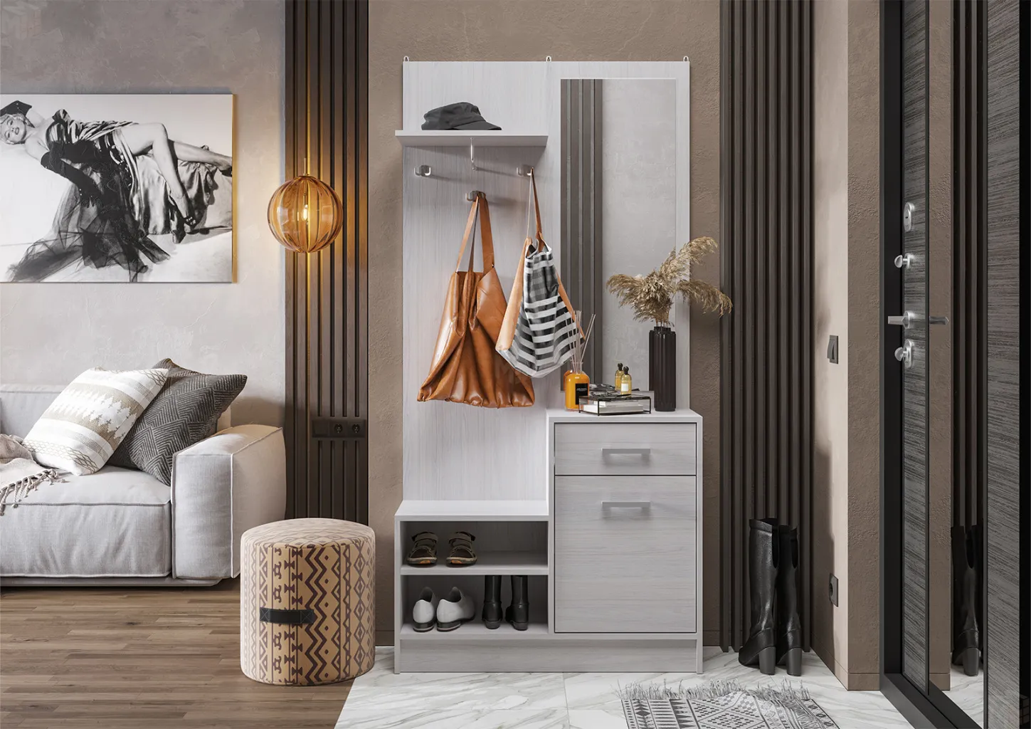 Прихожая «Дебора» прекрасно подойдет для небольшого коридорчика, потому что общая ширина составляет всего 900 мм.