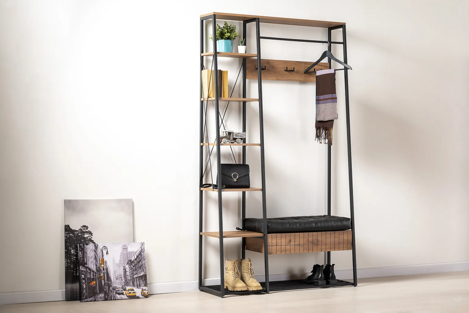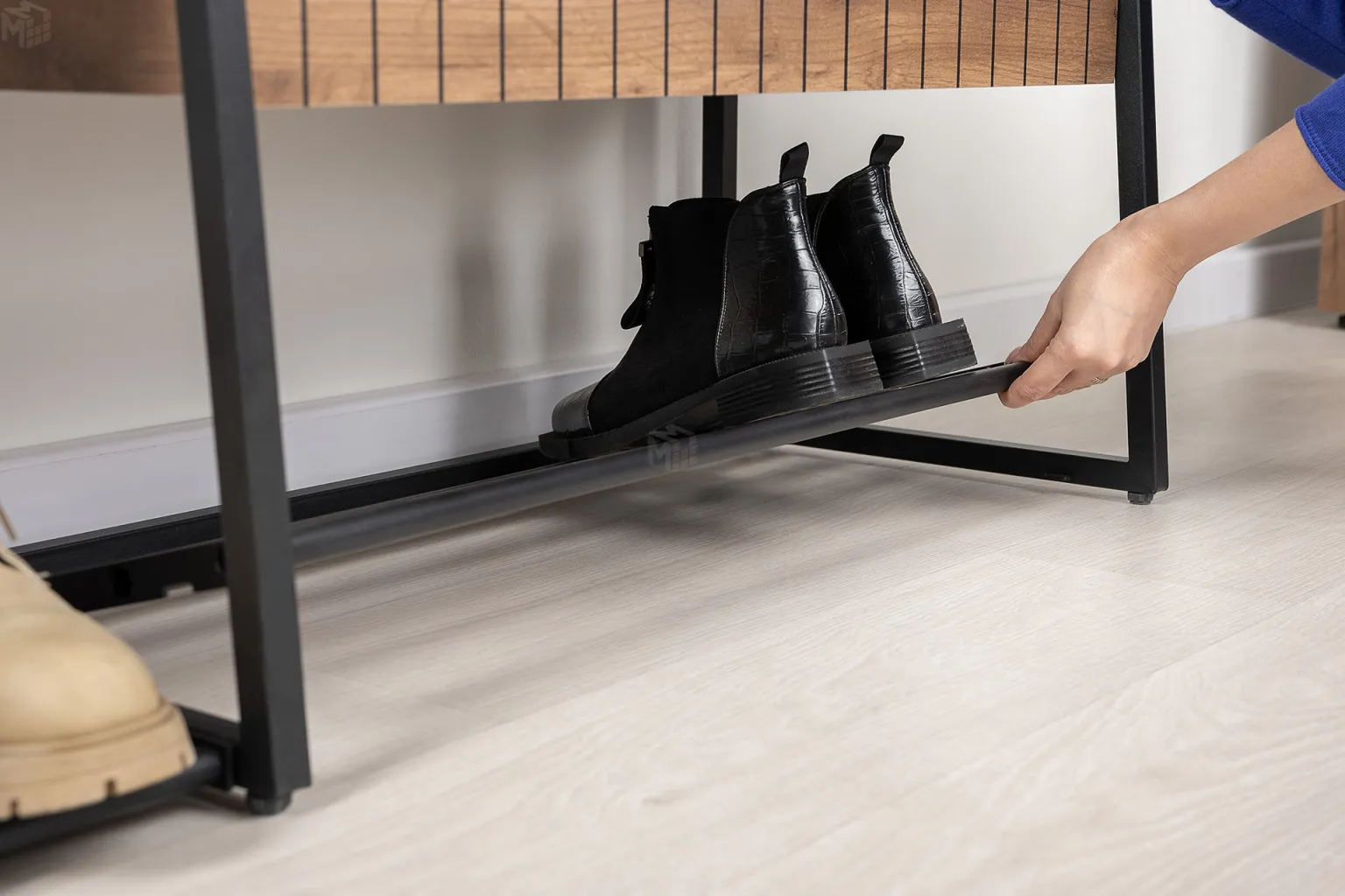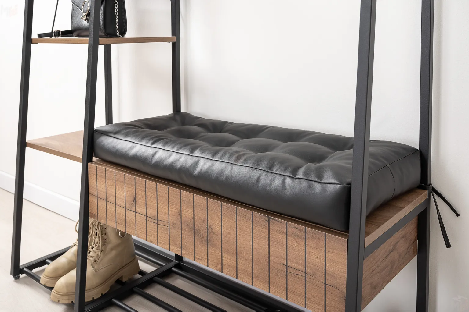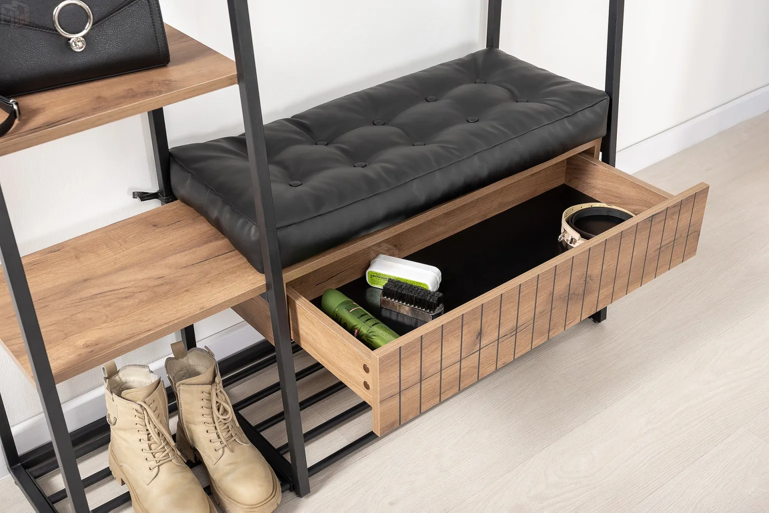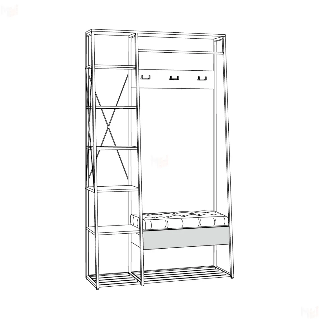Прихожая Гранд 15.124 стильное решение для прихожей в стиле Лофт. Удобное решение с обувницей, съёмные решётки. Выдвижной ящик для мелочей. -
