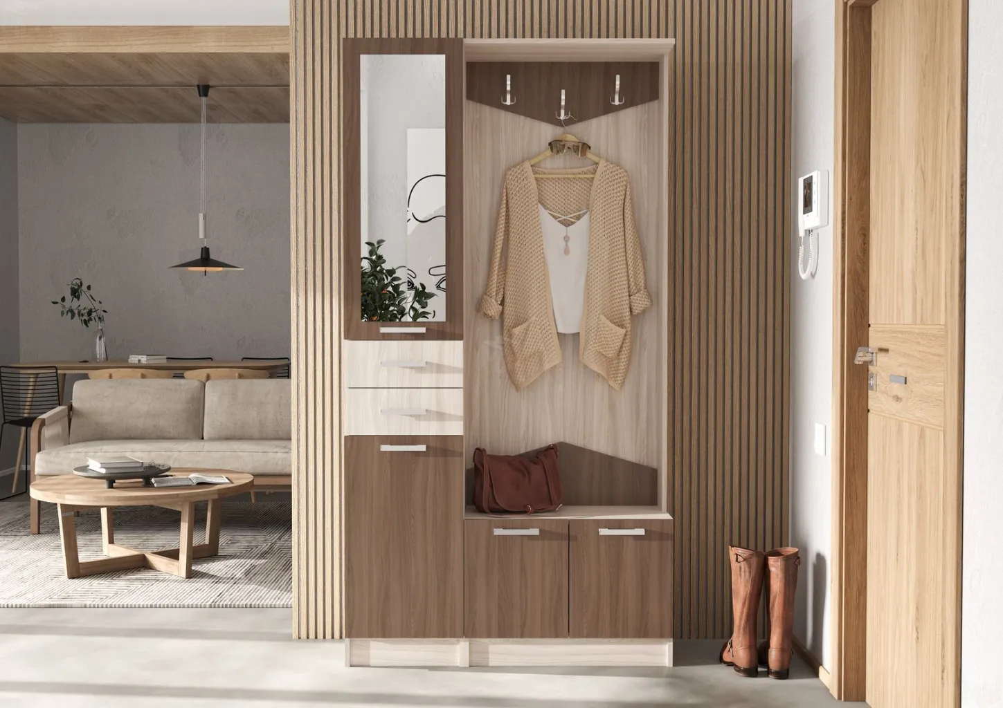 Прихожая "Грация 2" станет очаровательным и практичным дополнением вашей квартиры. Несмотря на то, что глубина модели всего 340 мм, изделие отличается функциональностью и вместительностью. Использование надёжных материалов является гарантом высокого качества, эргономичности и практичности производимого продукта.Вы сможете аккуратно и удобно хранить обувь, верхнюю одежду, аксессуары, зонты и головные уборы.Изделие подойдёт для меблировки любого помещения в современном стиле интерьера.