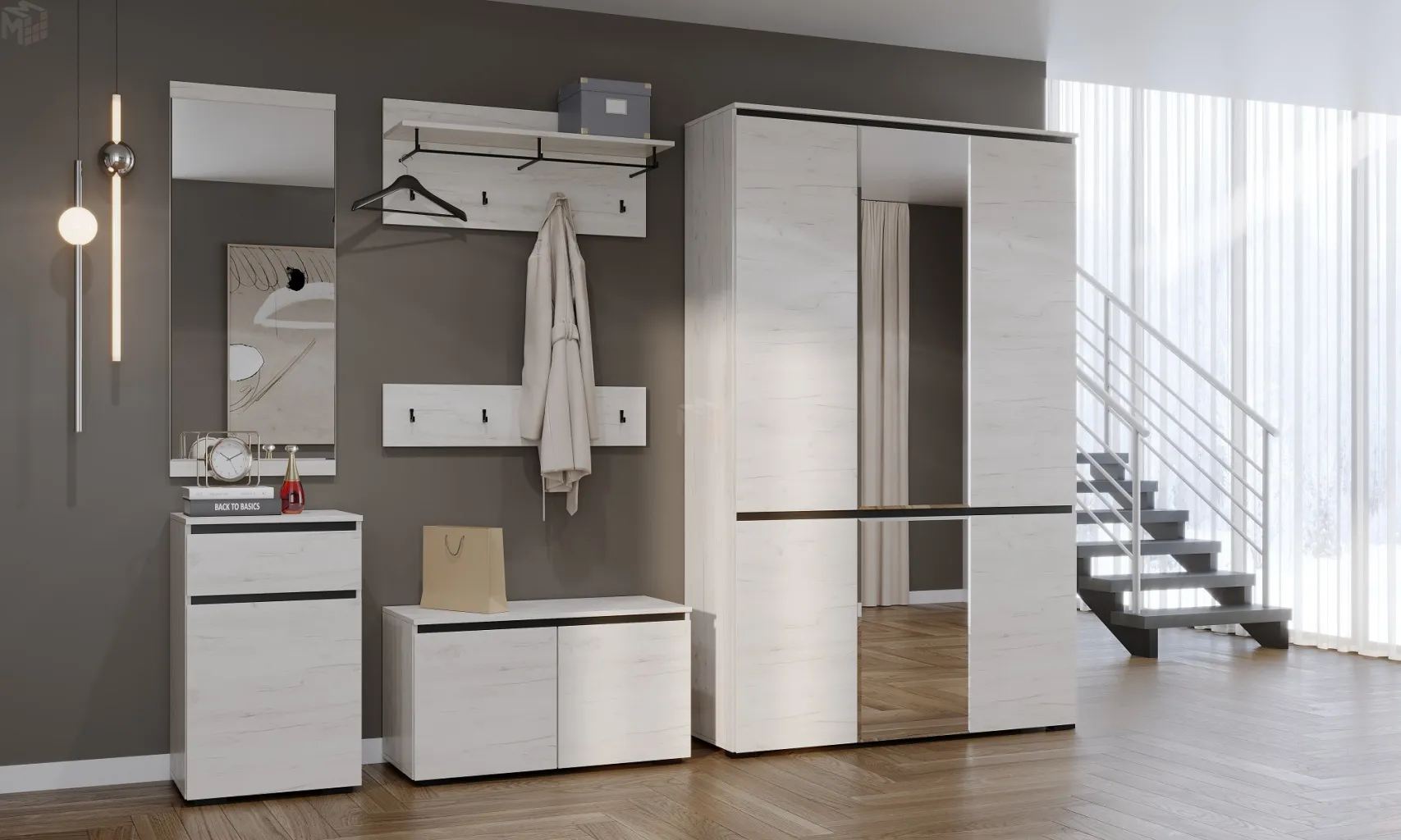 Прихожая ГРЕТТА Дуб Крафт белый - Антрацит №12
