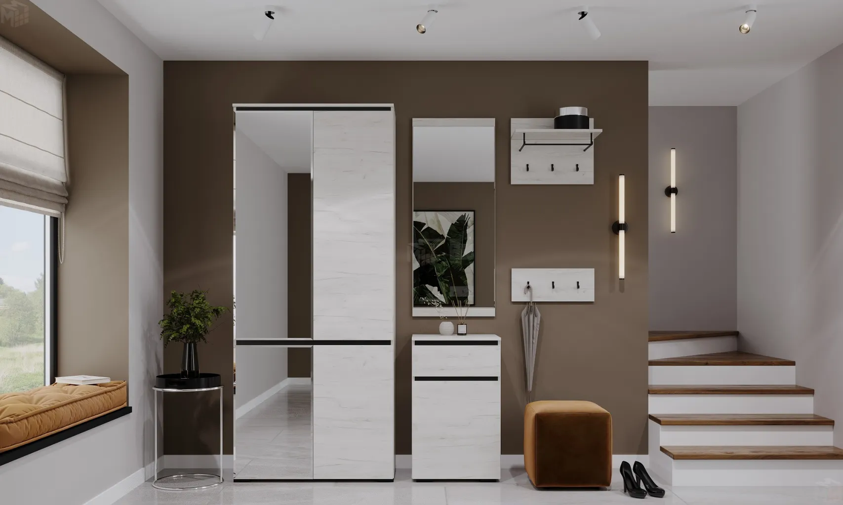 Прихожая ГРЕТТА Дуб Крафт белый - Антрацит №5