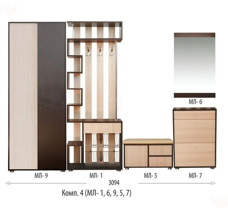 Прихожая Мини-Лайт Вариант 4 Венге/ясень