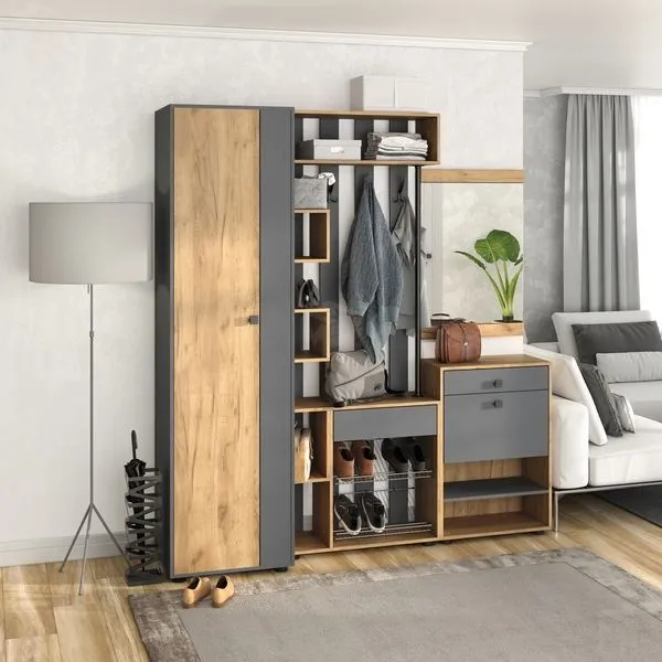 Прихожая Мини-Лайт Вариант 7 Дуб крафт золотой/графит
