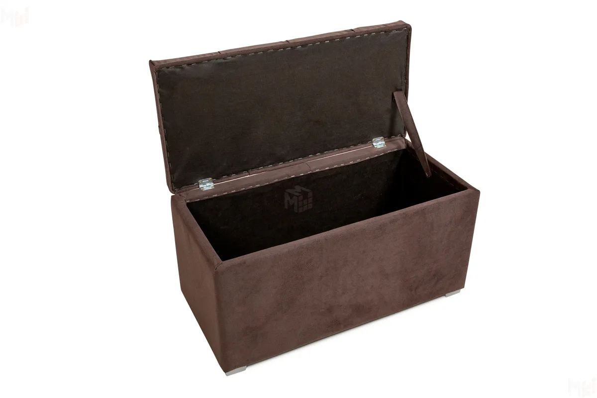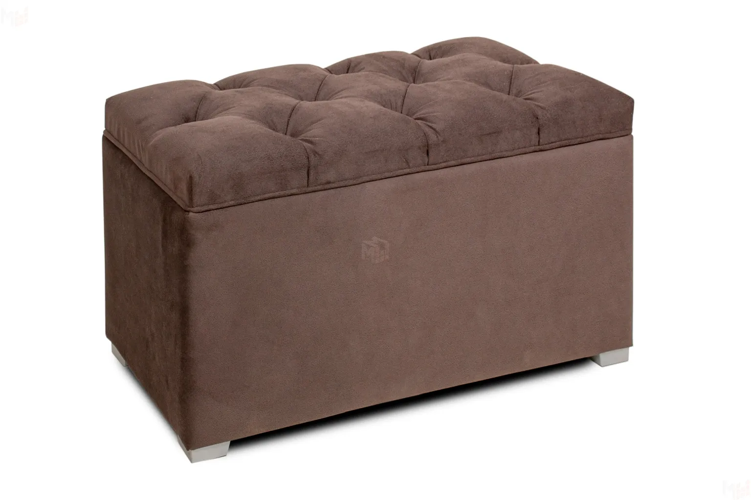Пуф Мишель шириной 750 мм с каретной стяжкой. Сиденье пуфа открывается. Под сиденьем большая и удобная ниша для хранения.