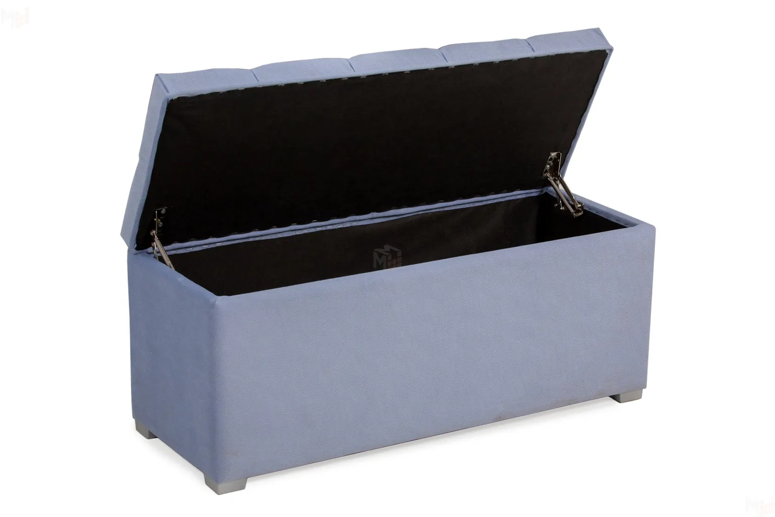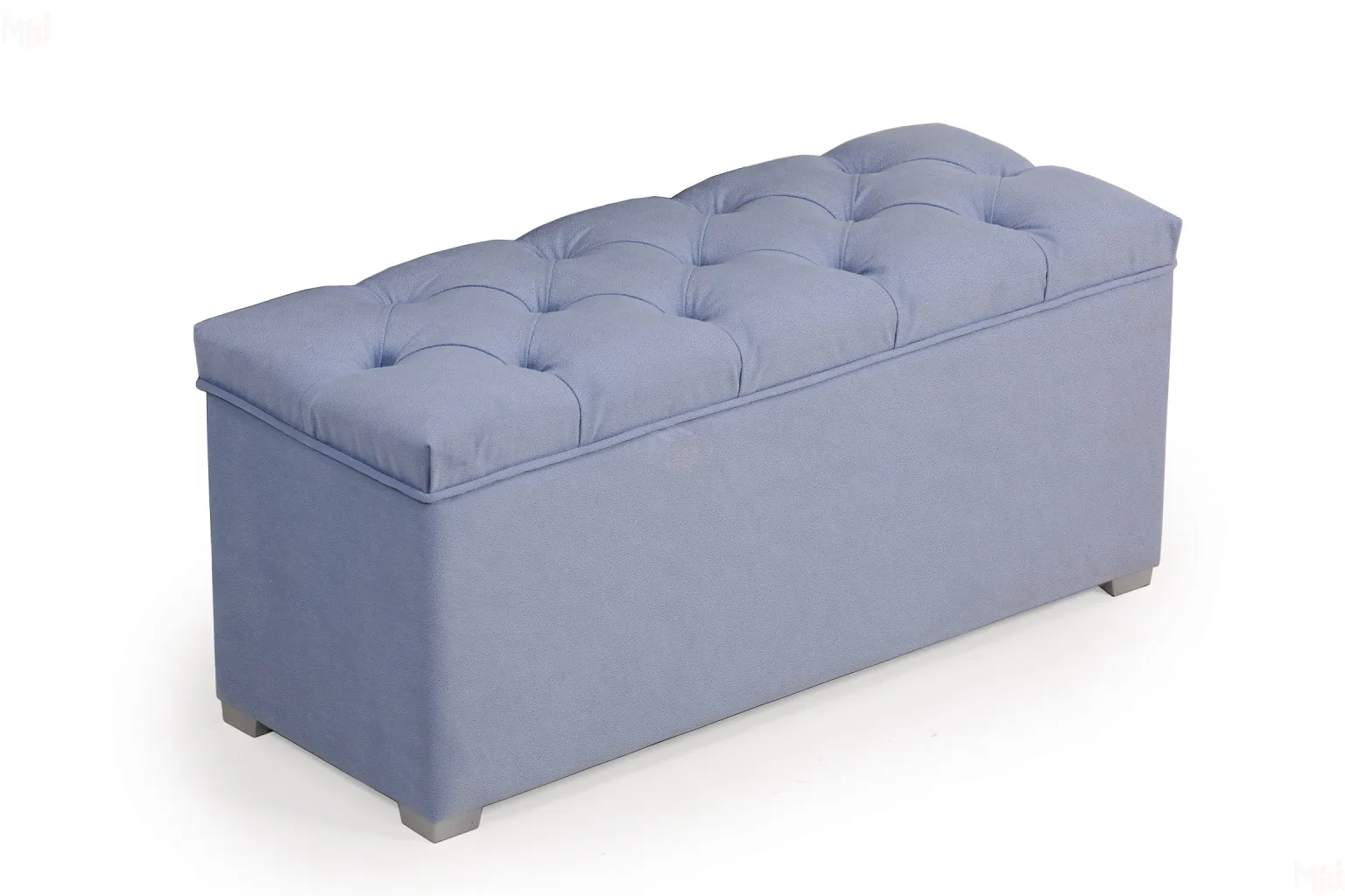 Пуф Мишель шириной 750 мм с каретной стяжкой. Сиденье пуфа открывается. Под сиденьем большая и удобная ниша для хранения.