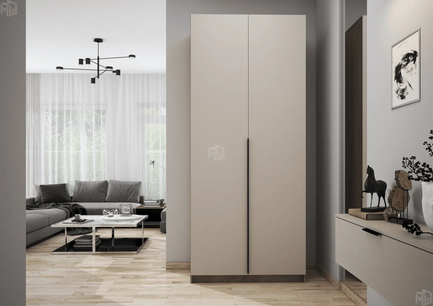 Корпус - Дуб крафт серый, фасады ЛДСП Кашемир. -