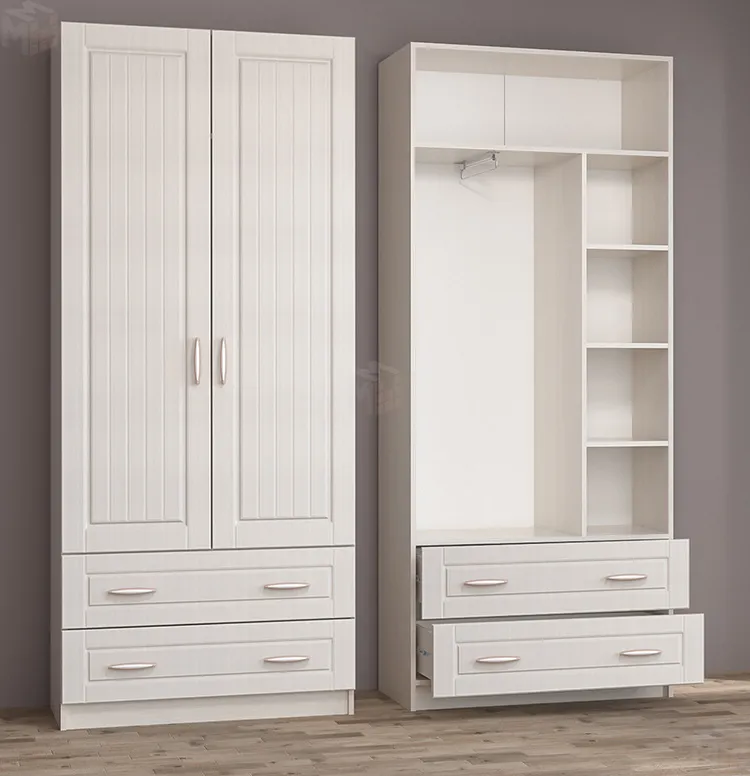 Шкаф оснащен двумя дверками и двумя выдвижными ящиками.