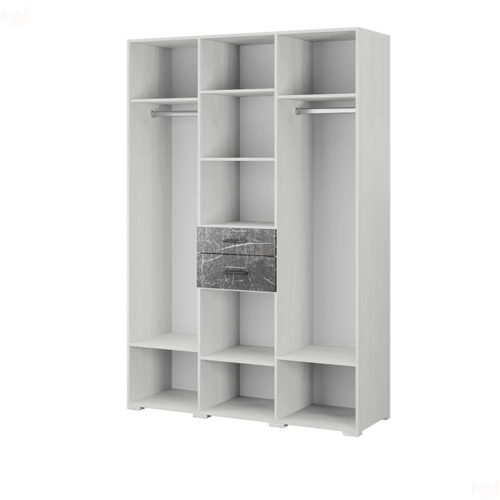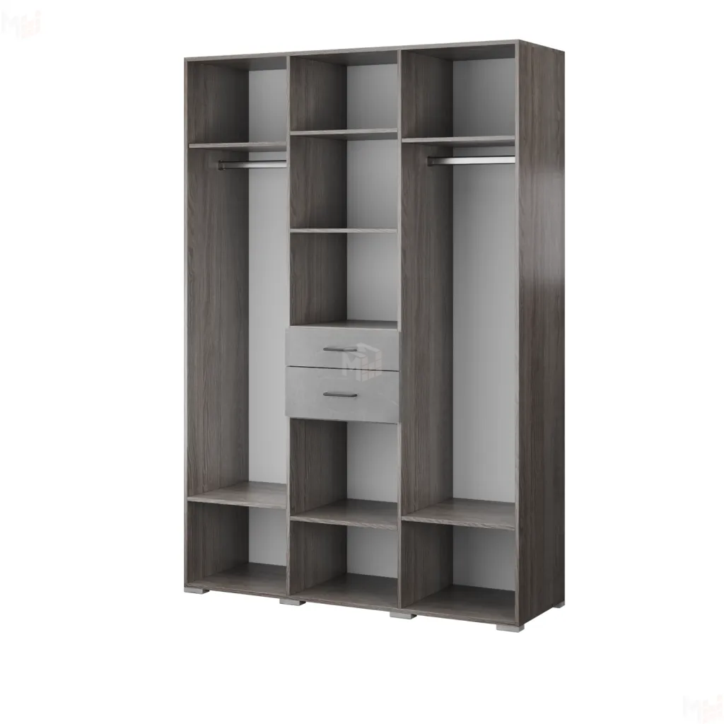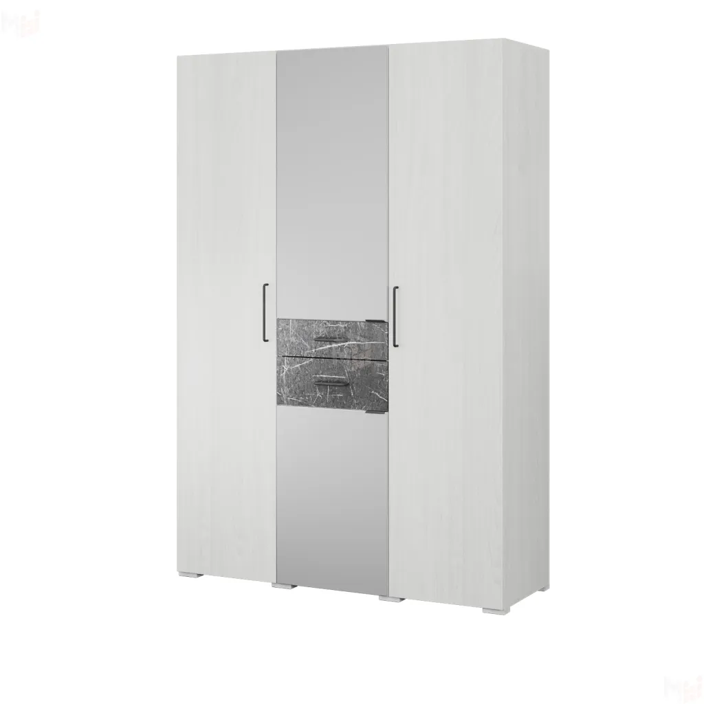 Шкаф 3-х дверный Теана безупречно впишется в интерьер уютной комнаты. За боковыми распашными дверьми находятся штанги для вешалок-плечиков, что очень удобно для семейной пары или для разного типа одежды. Множество полок и два небольших выдвижных ящика пригодятся для размещения сложенной одежды, белья и различных аксессуаров. -