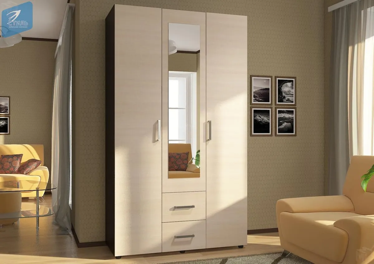 Корпус и фасад изготавливаются из ЛДСП 16мм и закромлены кромкой ПВХ толщиной 0,4 мм. На центральной створке наклеено зеркало с еврокромкой по периметру.