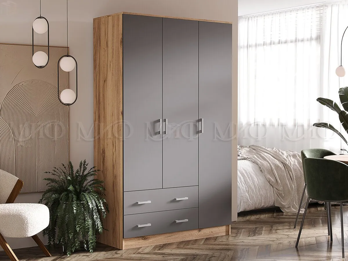 Шкаф 3-х створчатый Миф (дуб крафт/графит)
