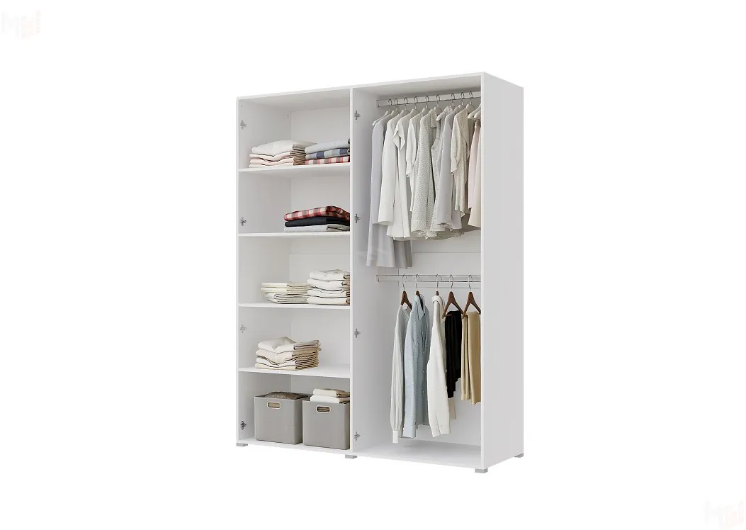 В шкафу есть отделения с полками для белья и штанга для верхней одежды (наполнение №3) -