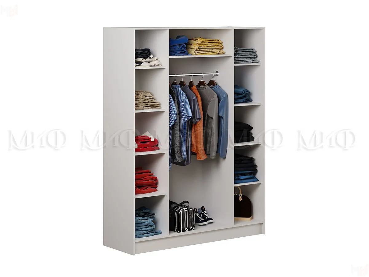 Шкаф имеет классический дизайн. Корпус выполнен из ЛДСП белого цвета, фасады МДФ белый глянец.