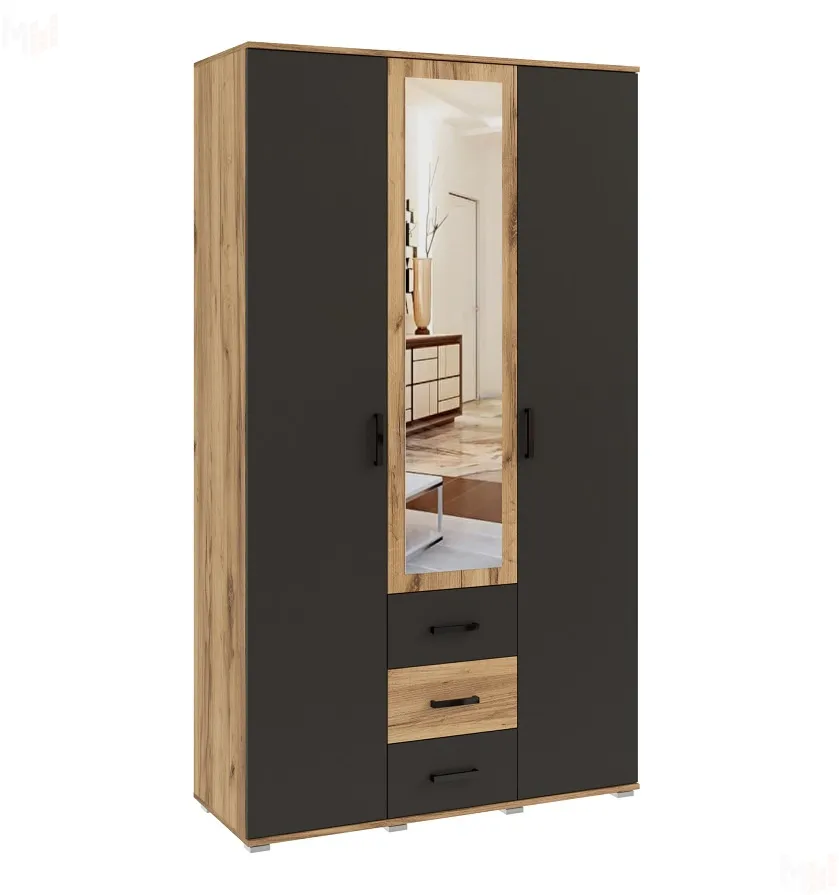 Шкаф Белла 3-х створчатый (дуб крафт/графит)