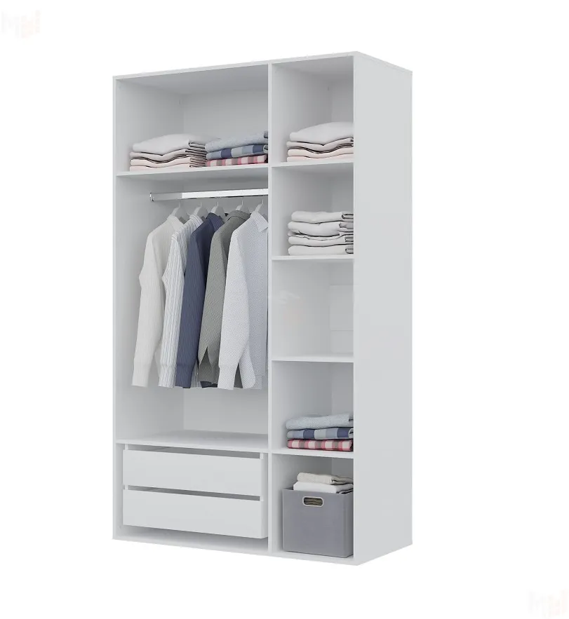 Наполнение №1 - полки большие и малые, штанга для вешалок, выдвижные ящики.