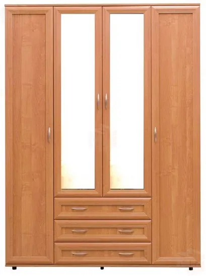 Четырёхстворчатый шкаф, благодаря необычной конструкции позволяющей быстро сортировать и удобно хранить одежду, может заменить целую гардеробную. Такую модель можно поставить и в спальню и в прихожую, она займёт небольшое пространство, но предоставит много места для хранения вещей.