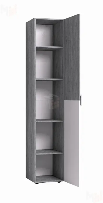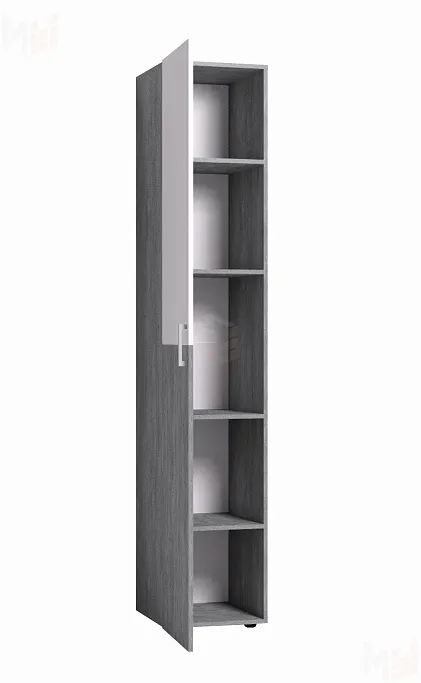 Узкий (всего 400 мм) Шкаф для белья 83 не займет много места в детской. Его конструкция предусматривает наличие четырех регулируемых по высоте полок за сборным фасадом. Каждая полка выдерживает нагрузку до 12 кг.