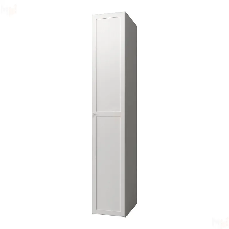 Бельевой шкаф-пенал поможет рассортировать вещи по полочкам. Комплектуется 4 полками, которые регулируются по высоте. Для этого достаточно закрепить полкодержатели в подготовленные отверстия. Шкаф для белья разделён на отдельно продающиеся элементы: корпус и фасад - Зеркало и Стандарт. В этом варианте корпус докомплектовывается фасадом Стандарт. Глухой фасад Стандарт выполнен в обрамлении из профиля МДФ. Шкаф обязательно крепить к стене за подвесы.