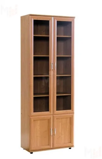 С детства каждому человеку родители внушают уважительное отношение к книгам. Для безопасного хранения их мебельщики придумали книжные шкафы. Чтобы ваши книги долго служили вам и имели аккуратный вид, удобна модель книжного шкафа № 108. Две трети его занимают четыре полки, закрытые застеклёнными дверками, а нижняя треть закрывается глухими дверками, и снабжена одной полкой. Глубина шкафа 390мм, делает удобным хранение книг и уход за ними. Дверки застеклены безопасным калённым стеклом, оно трудно бьющееся, а если разбивается, то образует мелкие осколки без острых углов. Шкаф надёжно стоит на пластиковых ножках. Классическая строгость линий делает его элегантным. Обладая компактными размерами модель №108 можно поставить в любом месте комнаты. Такой шкаф удачно поселится даже в детской. Модель выпускается из экологичной ДСП, имитирующей по цвету ценные породы дерева( ольха, дуб молочный, венге, итальянский орех, орех экко, ясень шимо темный), и декорирована накладками из МДФ. Дверцы снабжены удобными ручками.