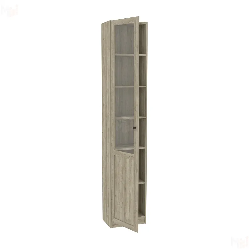 За стеклянным фасадом из закаленного прозрачного стекла регулируемые по высоте полки из ЛДСП, что позволит разместить литературу различного формата. Книжный шкаф обязательно крепить к стене!