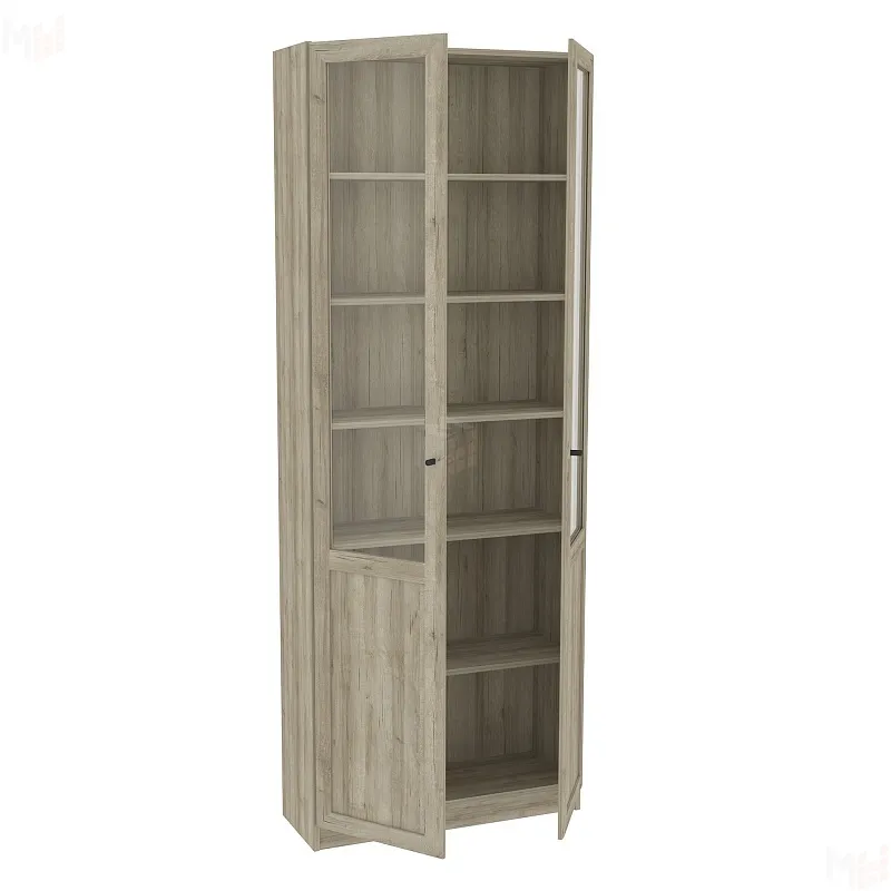 Книжный шкаф высотой 2107 мм поможет правильно организовать хранение книг и документов. За стеклянными фасадами из закаленного прозрачного стекла регулируемые по высоте полки из ЛДСП, что позволит разместить литературу различного формата.