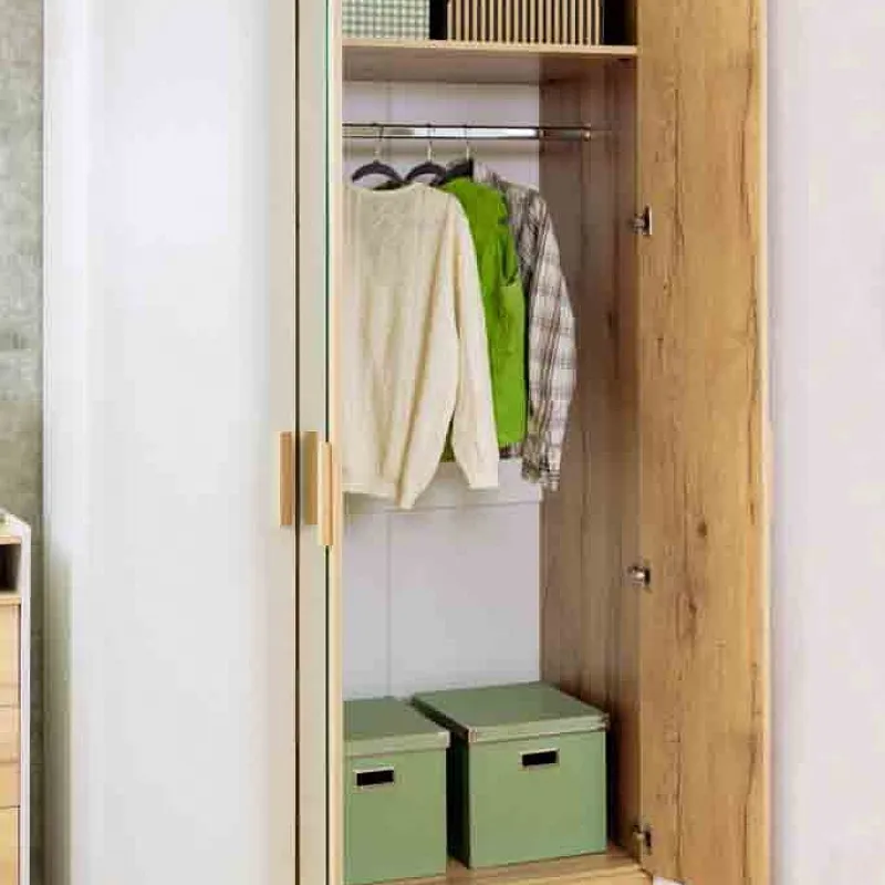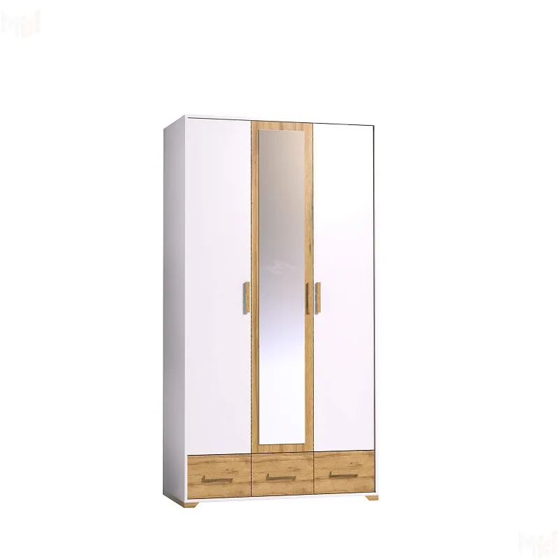 Шкаф оснащен отделением для хранения белья с полками на скрытых полкодержателях и отделением для одежды со стационарной штангой 758 мм. 3 выдвижных ящика комплектуются шариковыми направляющими, что обеспечивает минимальный люфт ящиков и максимальное использование их площади. Петли с доводчиками для бесшумного закрывания дверок шкафа. Зеркало на фасаде шкафа. -