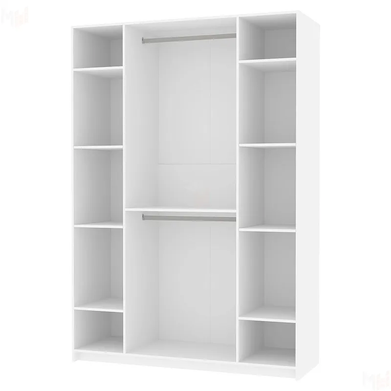 Вместительный четырехдверный Шкаф для одежды и белья зарекомендовал себя как отличный, продуманный по внутреннему наполнению и функционалу модуль. Боковые ниши комплектуются 4 полочками, которые легко закрепить на нужной высоте.