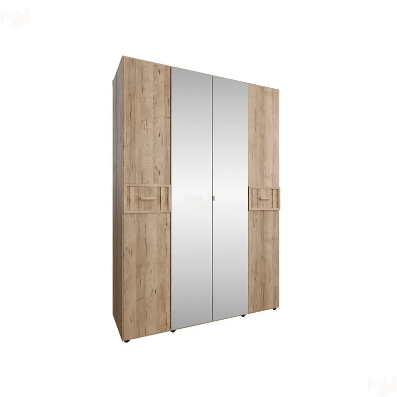 Scandica Oslo 555 Шкаф для одежды и белья Фасад Зеркало/Стандарт - самый большой и вместительный шкаф коллекции Scandica Oslo не оставит равнодушными хозяек, ценящих рациональное использование пространства. Система хранения распашного шкафа включает в себя: стационарную штангу 777 мм, две полки- ниши по центру, ряд регулируемых полок для белья с обеих сторон. Два светлых глухих фасада с ручками из массива дерева декорированы рамочной вставкой. Один из зеркальных фасадов с металлической ручкой, чтобы открывать шкаф и при этом не оставить следов на зеркале. Регулируемые опоры помогут компенсировать неровности пола, если у Вас не ровный пол. Возможность перевешивать фасады позволят создать современную компоновку из нескольких шкафов во всю стену.