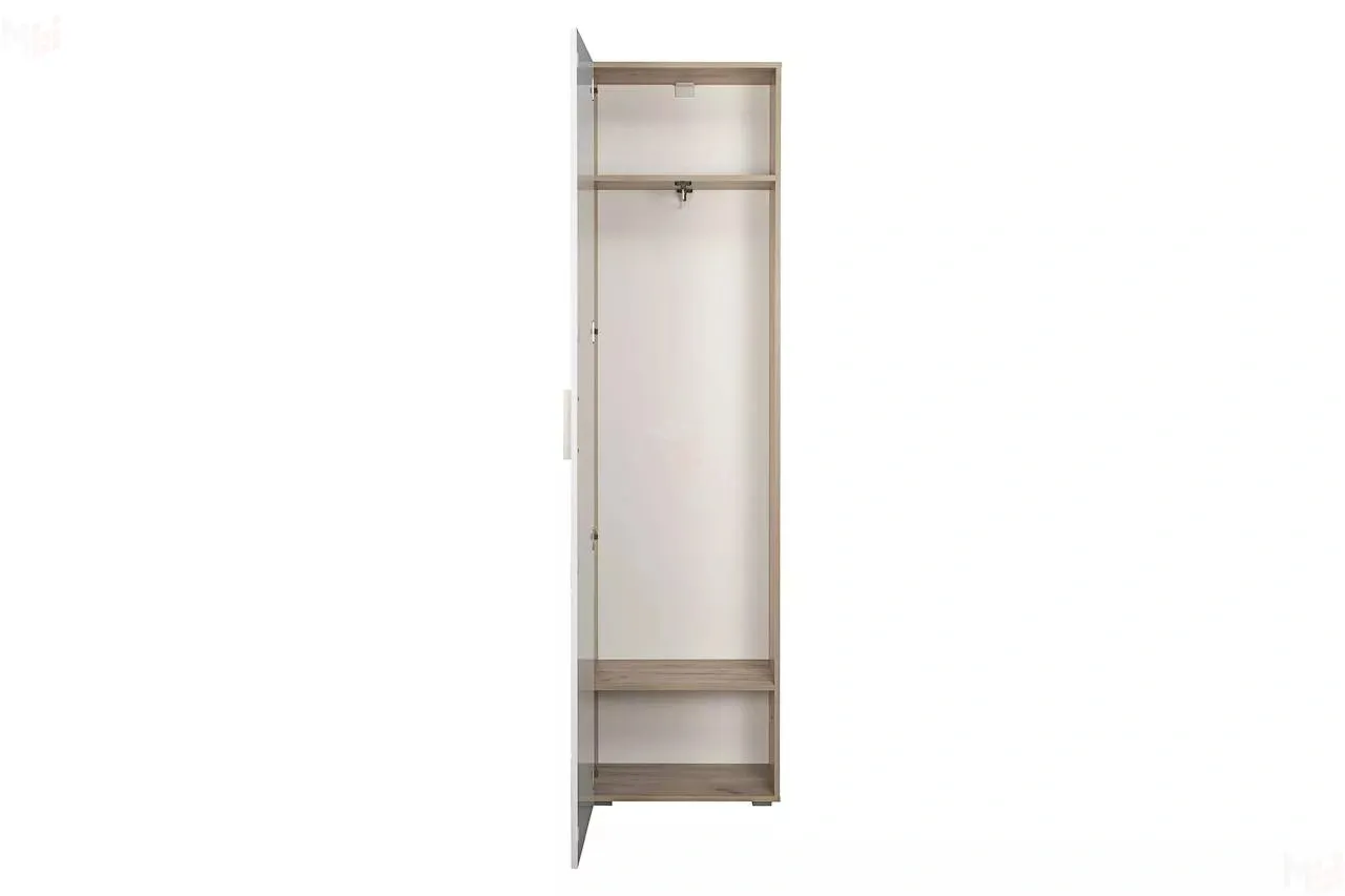 Компактный и необычайно функциональный шкаф для одежды Лайн 08.122 станет практичным дополнением в вашей прихожей. За распашной дверцей находится выдвижная штанга для вешалок-плечиков с верхней одеждой и антресольная полка для головных уборов и разнообразных аксессуаров. Нижняя полка пригодится для размещения и бережного хранения нескольких пар обуви.