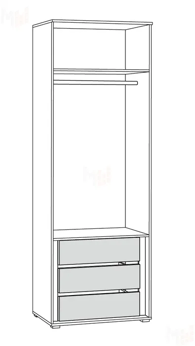 Шкаф для одежды Остин 13.336.02 из модульного комплекта Остин может быть комбинироваться с модулями из этой же серии или стоять отдельно. В шкафу два встроенных выдвижных ящика для одежды. -