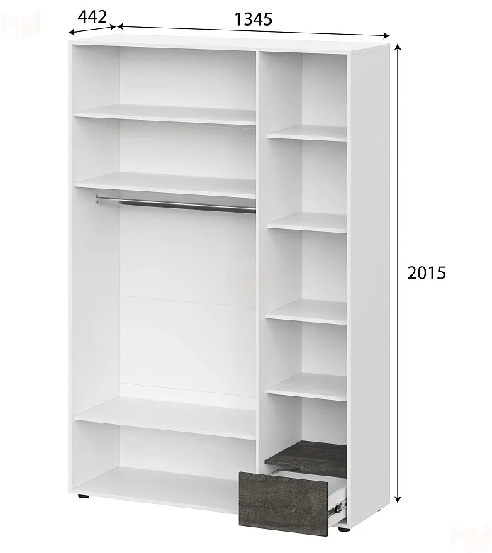 Ширина: 1345 мм, Глубина: 442 мм, Высота: 2015 мм