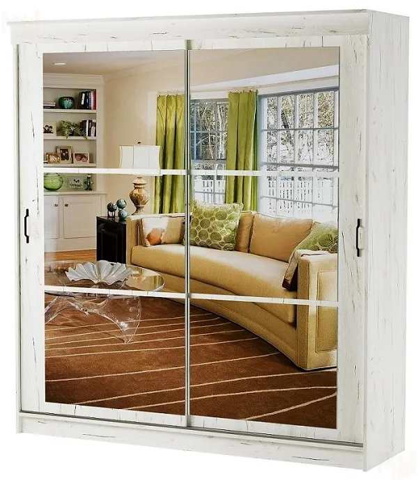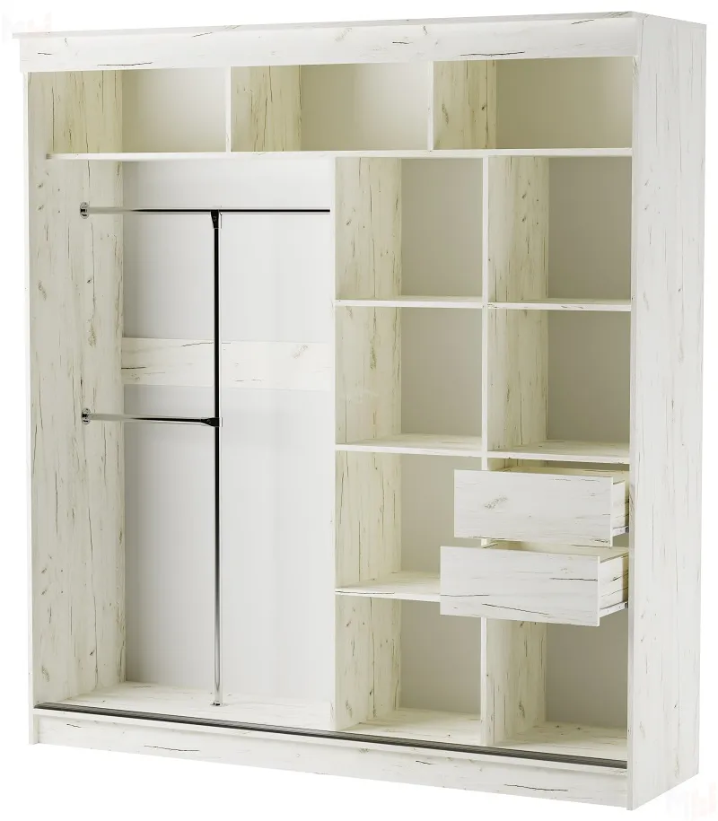 Шкаф-купе 2,0 м с зеркалом ОРИОН Дуб Крафт белый