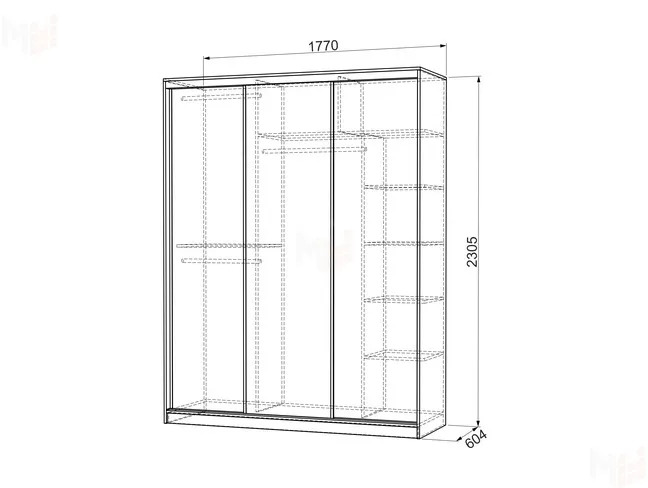 ширина 1770 мм, глубина 604 мм, высота 2305 мм