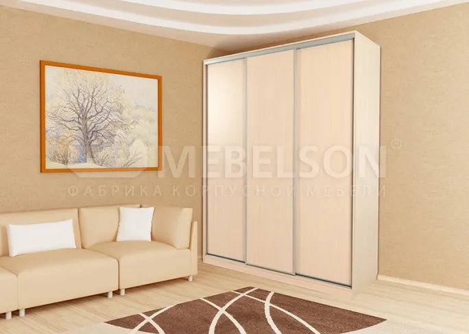 В шкафу есть верхние полки для крупногабаритных вещей. Двери-купе в рамочном стальном профиле. Шкаф-купе «Бассо» отлично будет смотреться в гостиной, спальне, детской и прихожей.