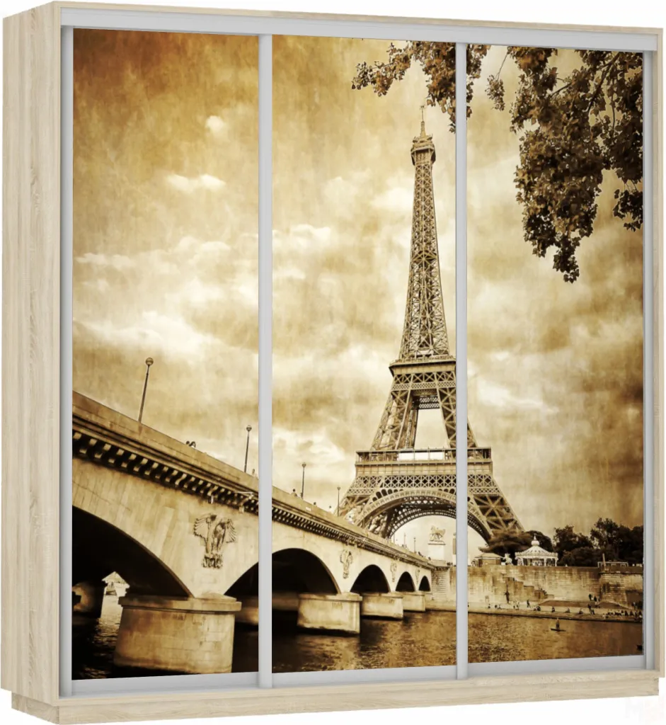 Шкаф-купе Экспресс Фото трио 2100 Башня (дуб молочный)