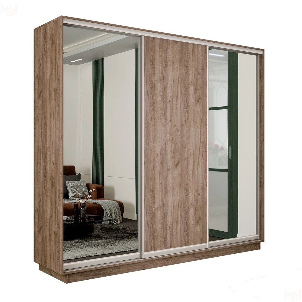 Шкаф-купе Экспресс трио 2 зеркала 2400 (Крафт табачный)
