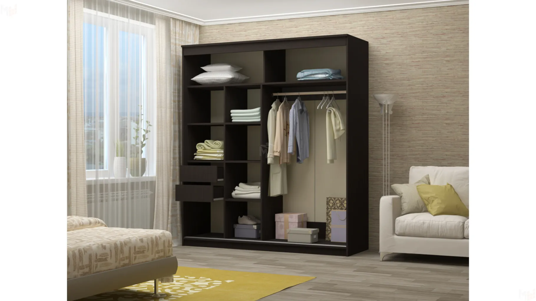 Купе, С зеркалом (зеркальный), Для одежды, С вешалкойКупе, С зеркалом (зеркальный), Для одежды, С вешалкойМесто установки