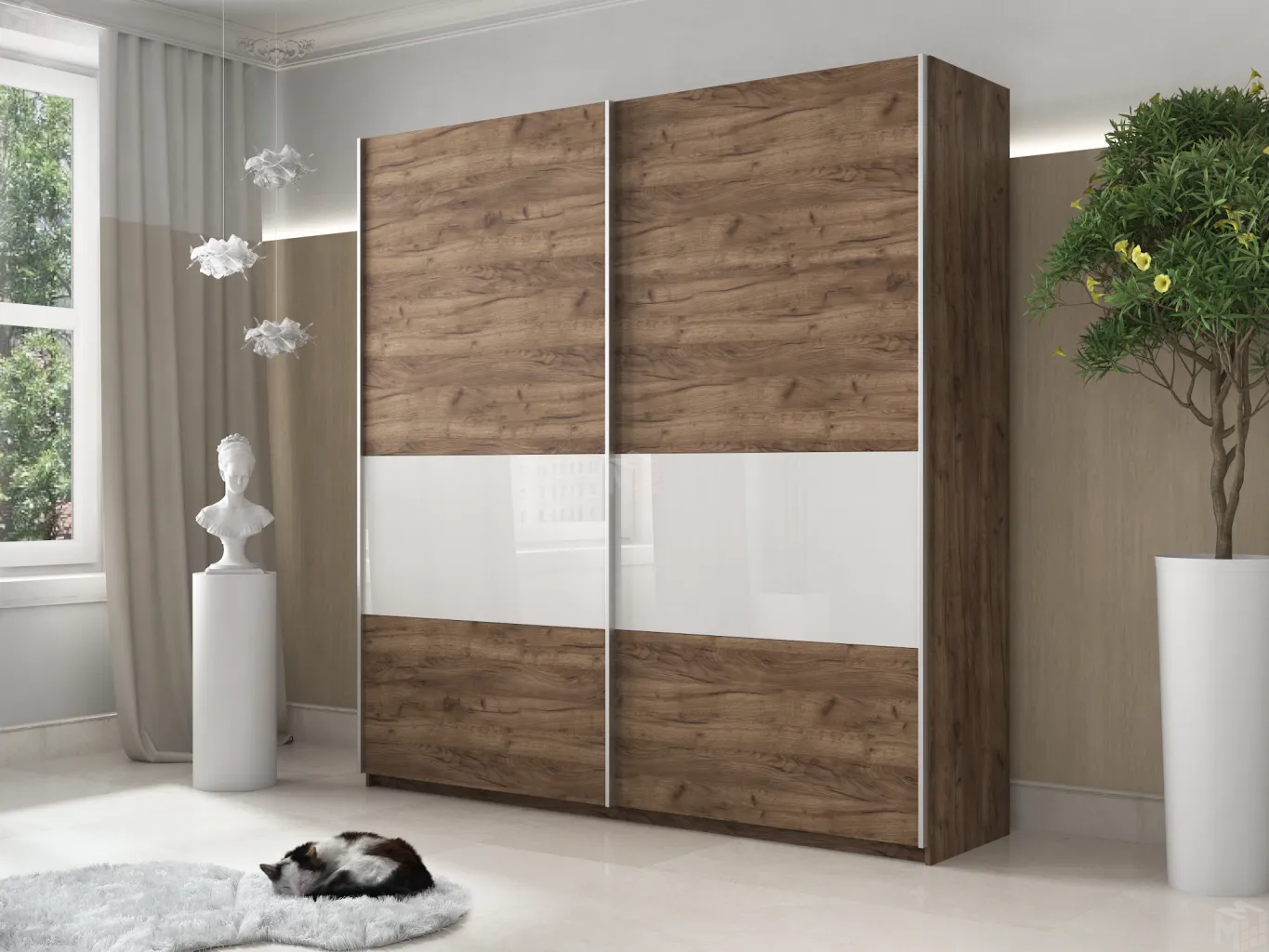 Комплектующие класса Люкс - Шкаф оснащен доводчиком на закрывание в базовой комплектации, а также регулируемыми опорами — они позволяют устанавливать шкаф-купе на неровном полу. Шкаф впишется в любой интерьер и особенно подойдет под классический, лофт и другие современные стили.