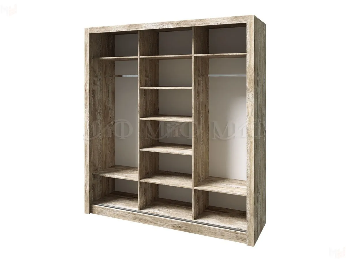 Шкаф оснащен полками для белья и вешалками для одежды. -