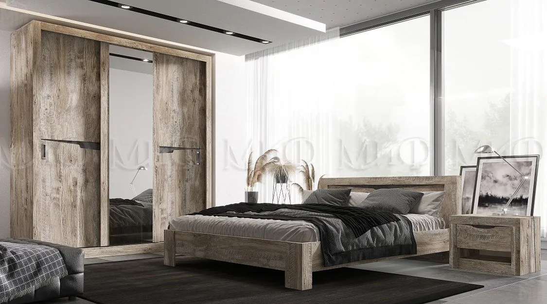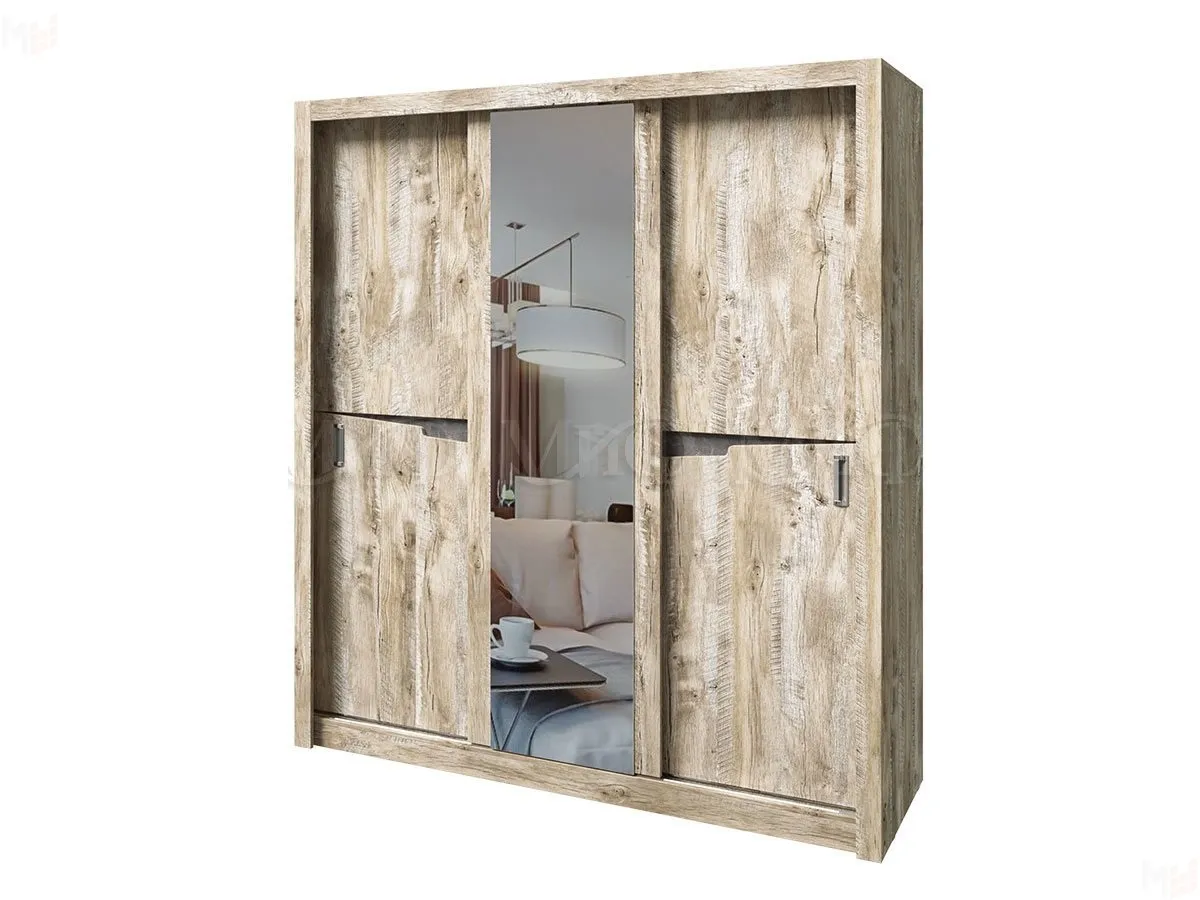 Каркас и фасады шкафа Ривьера выполнены из ЛДСП Юкон, вставки Бетон темный.