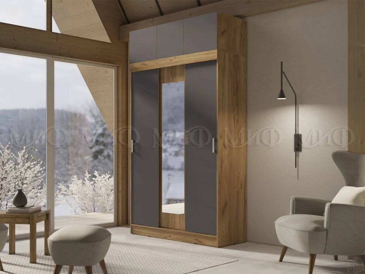 Шкаф-купе с антресолью Роджина/Бася (крафт золотой/графит)
