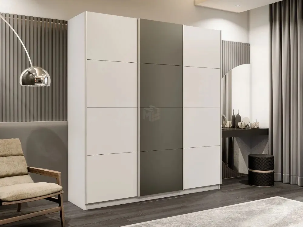 Шкаф-купе широкий Прайм 3-х дверный ЛДСП, Стекло хаки 240 см