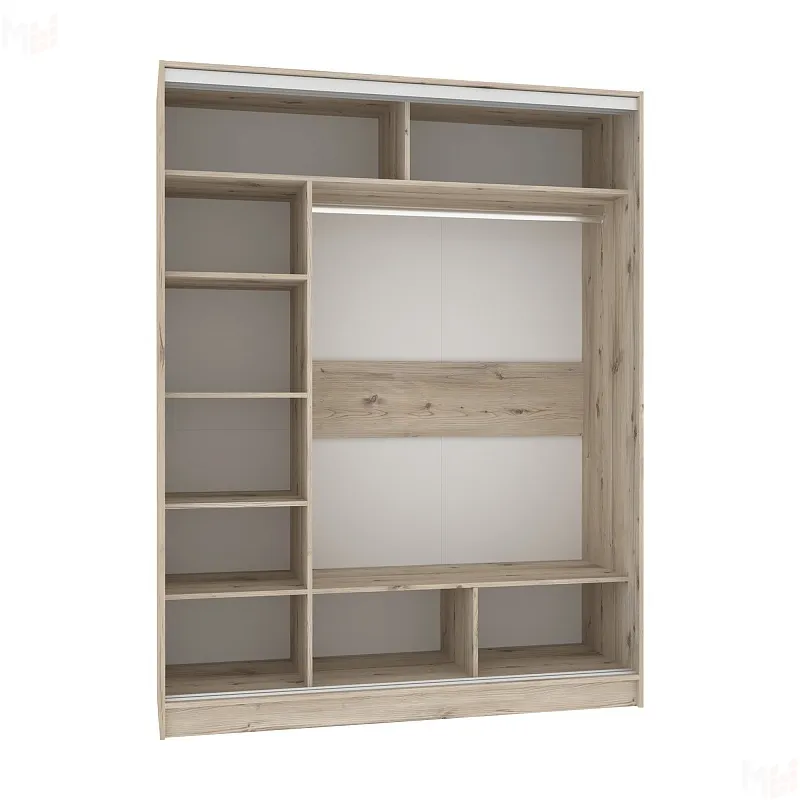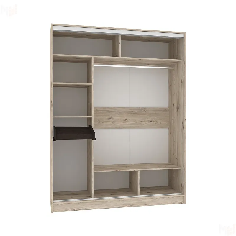 В шкафу-купе шириной 160 см найдется место для гардероба всей семьи. Разместите в нем бельё, верхнюю одежду и аксессуары. Продуманное внутреннее наполнение шкафа состоит из стеллажа для белья, четырех больших ниш внизу и вверху, а также стационарной штанги длиной больше метра. Зеркальная дверца с обратной стороны проклеена специальной защитной пленкой, которая предотвратит от падения осколков, если она разобьется.