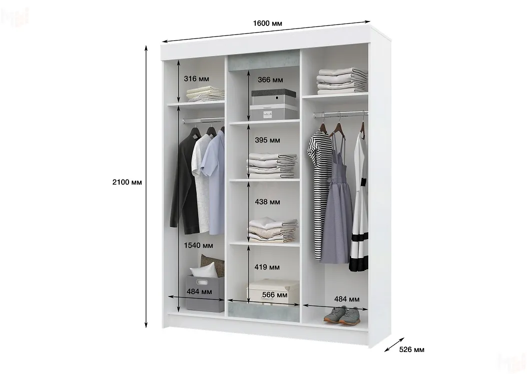 Ширина 1600 х Глубина 520 х Высота 2100мм