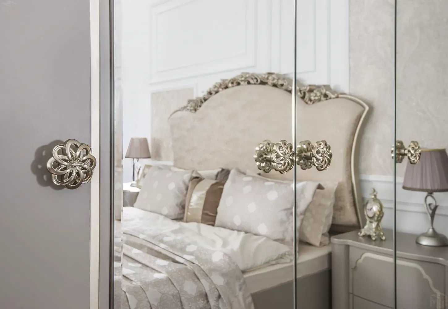 Шкаф Лали 4-дверный бежевый с зеркалом