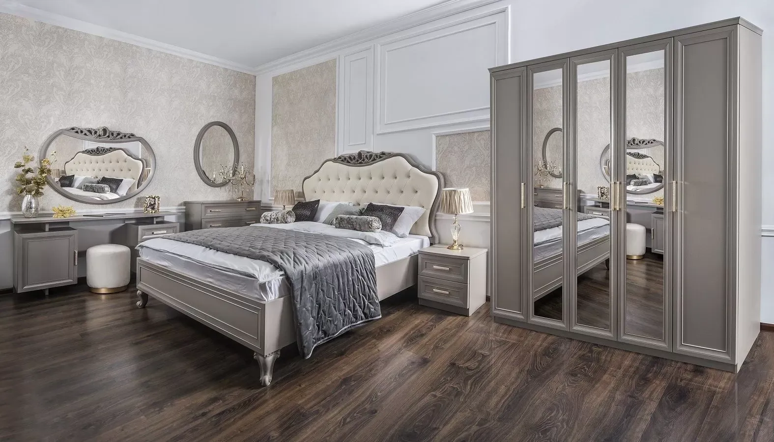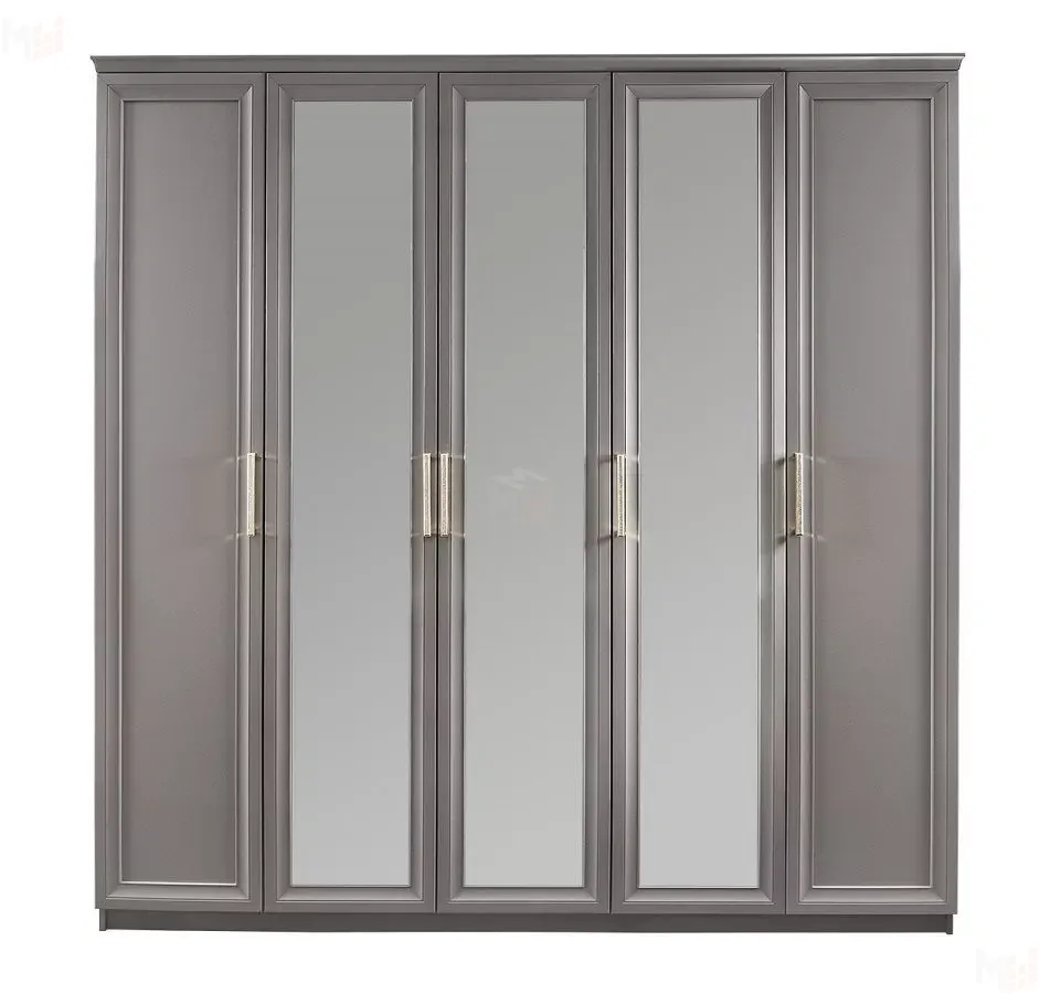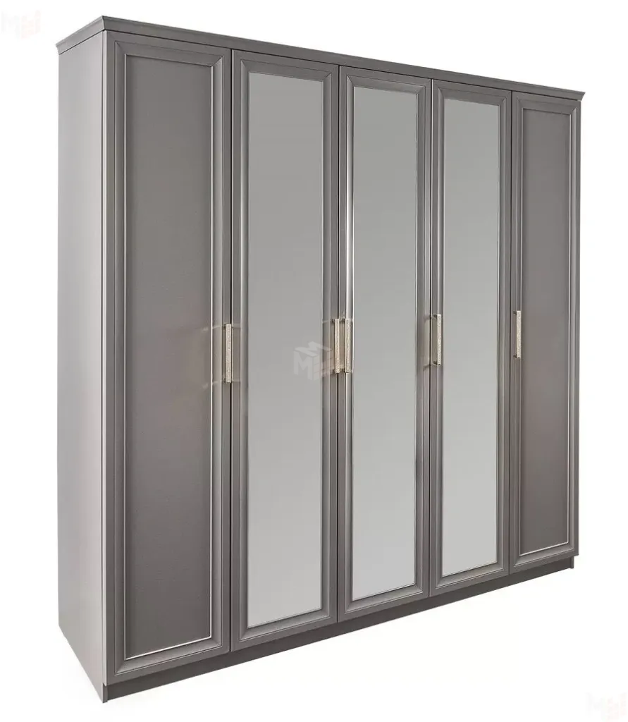 Шкаф Мокко 5-дверный с зеркалом серый