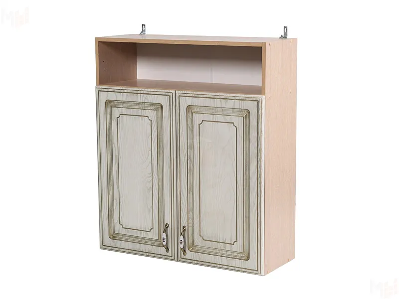 Шкафчик навесной на 800 с двумя глухими дверками, декоративной полочкой-нишей, украшенной балюстрадой.