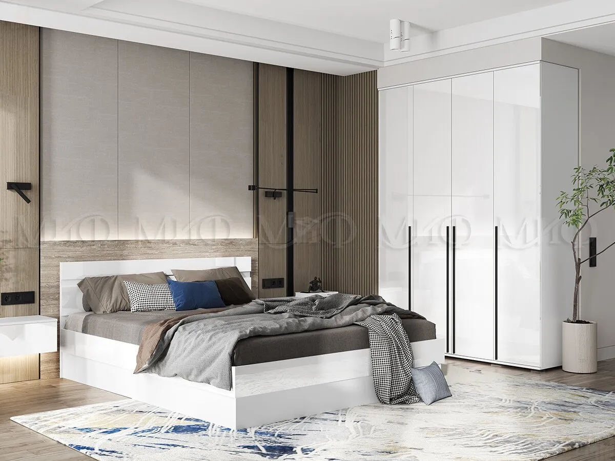 Шкаф Норд 4-х створчатый (белый/белый глянец)