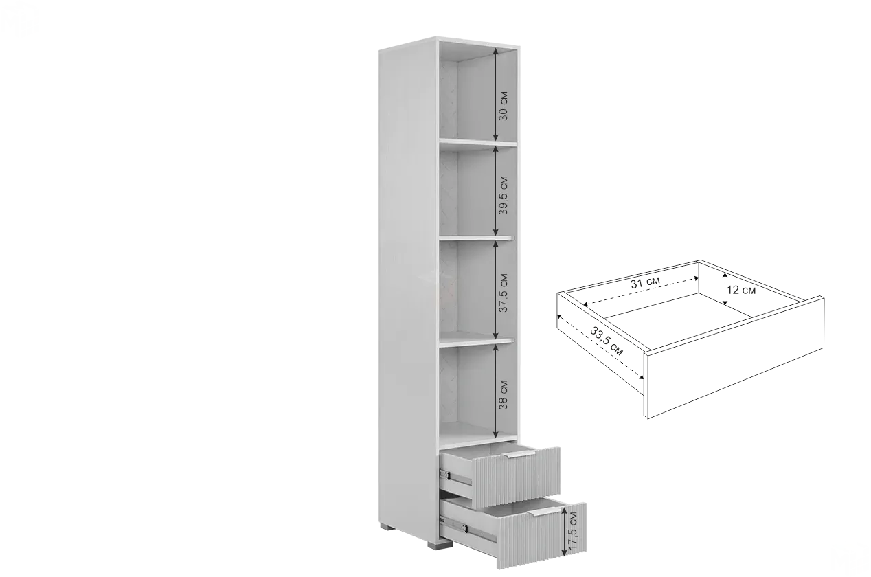Шкаф Зефир оснащен двумя просторными ящиками с шариковыми направляющими, которые позволяют легко и плавно открывать и закрывать их. Фасады ящиков украшены вертикальными полосами, добавляющими особый шарм и элегантность данному изделию. Дверь - рамка алюминиевая и стекло рельефное,ручки металлические. Благодаря своей универсальной сборке, вы всегда сможете вписать в шкаф в свой интерьер, также он легко и быстро собирается без особых усилий.
