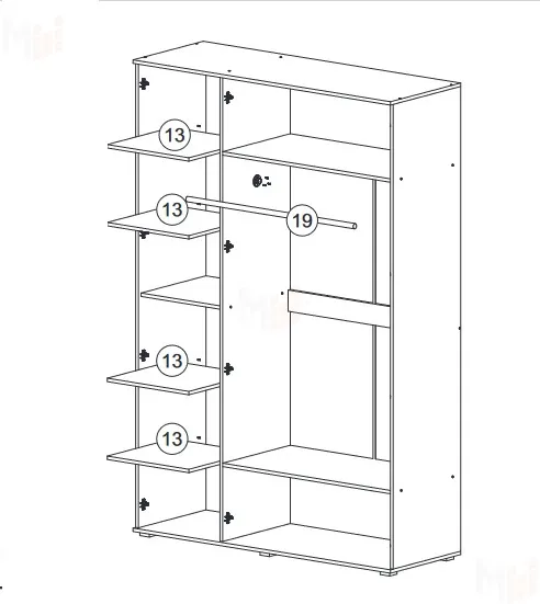 Шкаф Оливия из одноименного спального гарнитура. Шкаф оснащен полками для белья с одной стороны, отделением для верхней одежды за двумя распашными дверцами.