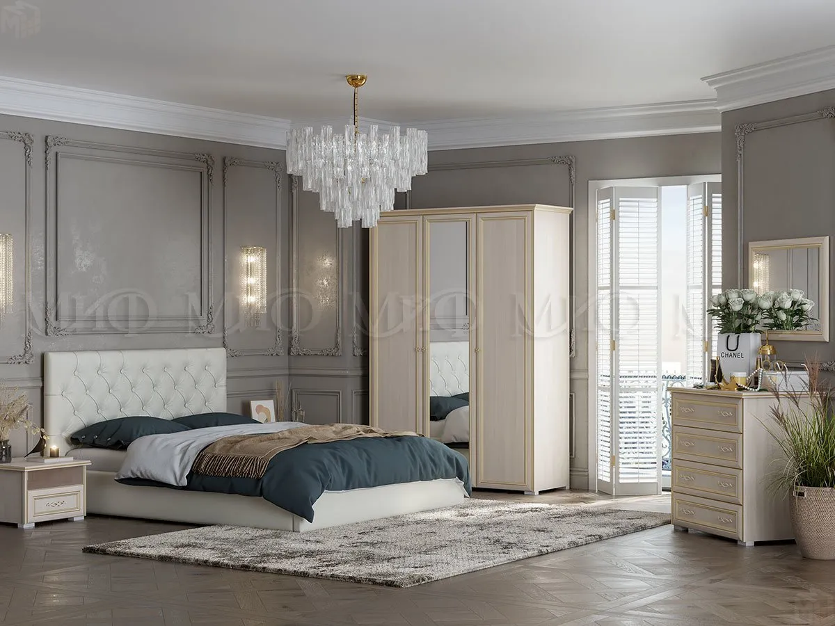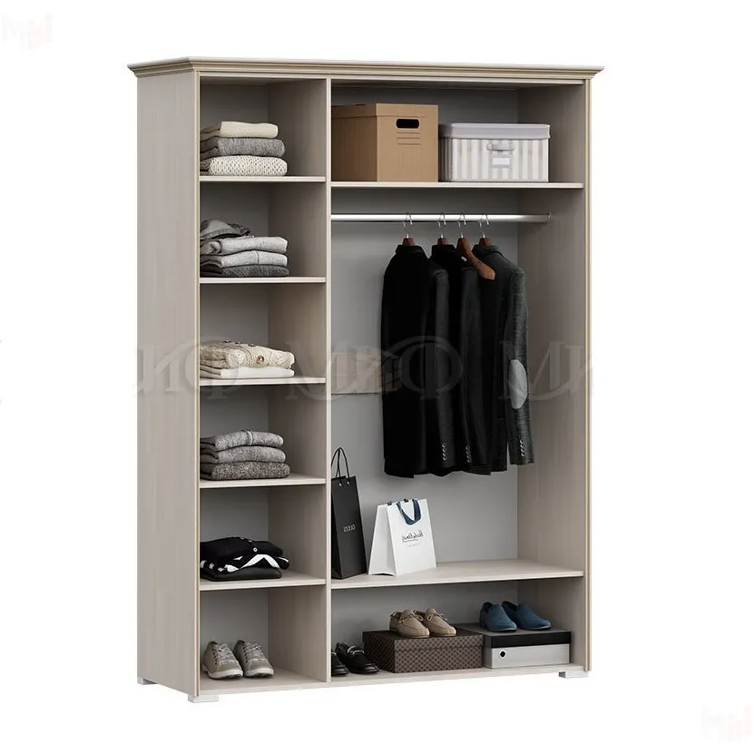 Наполнение шкафа - по бокам расположены полки для белья, в средней части отделение для верхней одежды. -